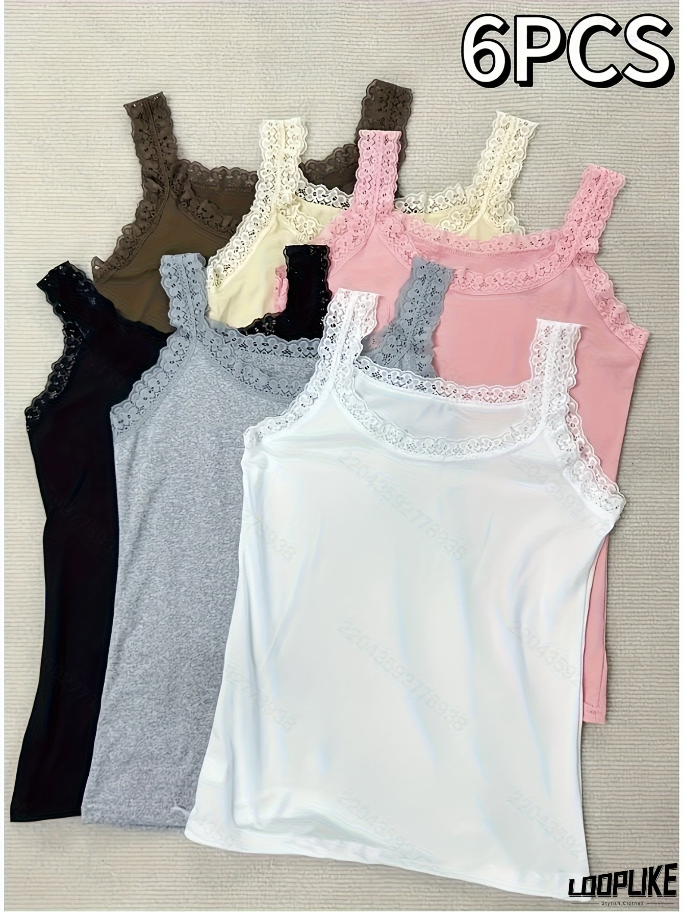 6pcs Women's Sleeveless Home Tops with Lace Trim Neckline & Spliced Shoulder Straps - Breathable Lightweight Fabric, Solid Colors for Casual Loungewear & Pajamas, All-Season Comfort, Comfortable Pajamas, Elegant Strap Detail, Quality Fabric Tops
