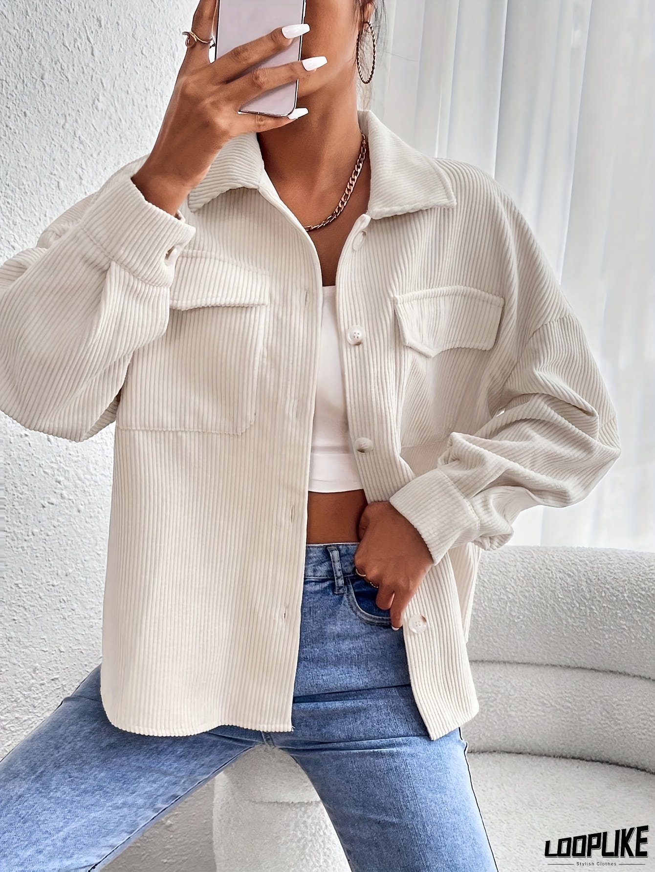 Elegant Casual Women's Polyester Jacket - Middle Eastern-Inspired Collar & Chic Flap Pockets, Drop Shoulder Long Sleeve Solid Color Fall/Winter Outerwear, Machine Washable Regular Length Fabric, Winter Coat, Lightweight Coat
