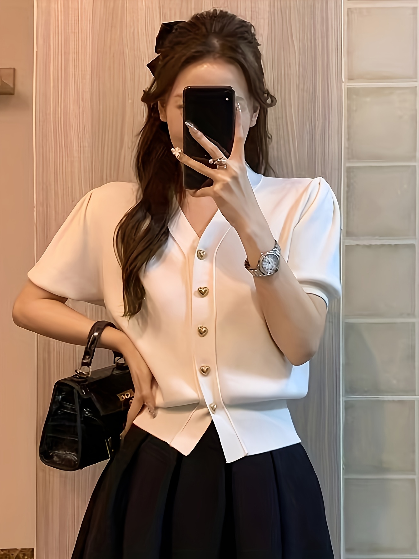 Graceful Ice Sliky Fiber Fabric Short-Sleeve Cardigan New Arrival Stylish Bubble Sleeve Crop Top