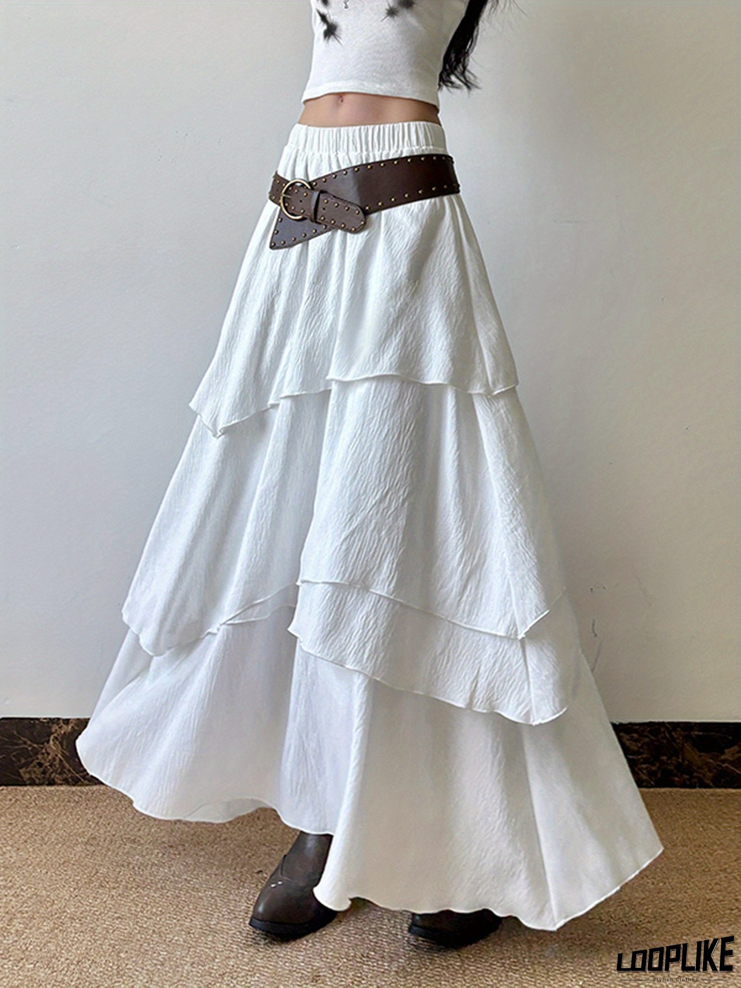 Trendy Queen Long Skirts For Women Boho Maxi Skirt Summer Swing Tiered A-Line Elastic High Waist Dress With Pockets Fashion