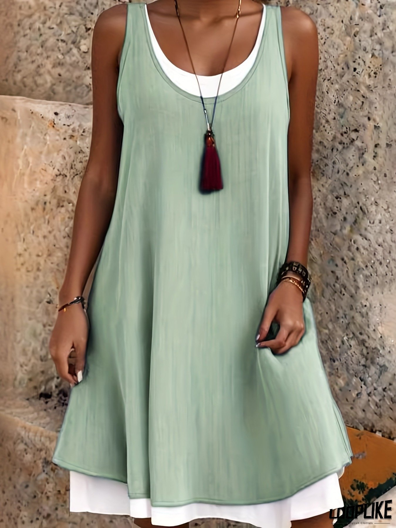 New Summer Casual Sleeveless Fake Two-Piece Loose Vest Dress
