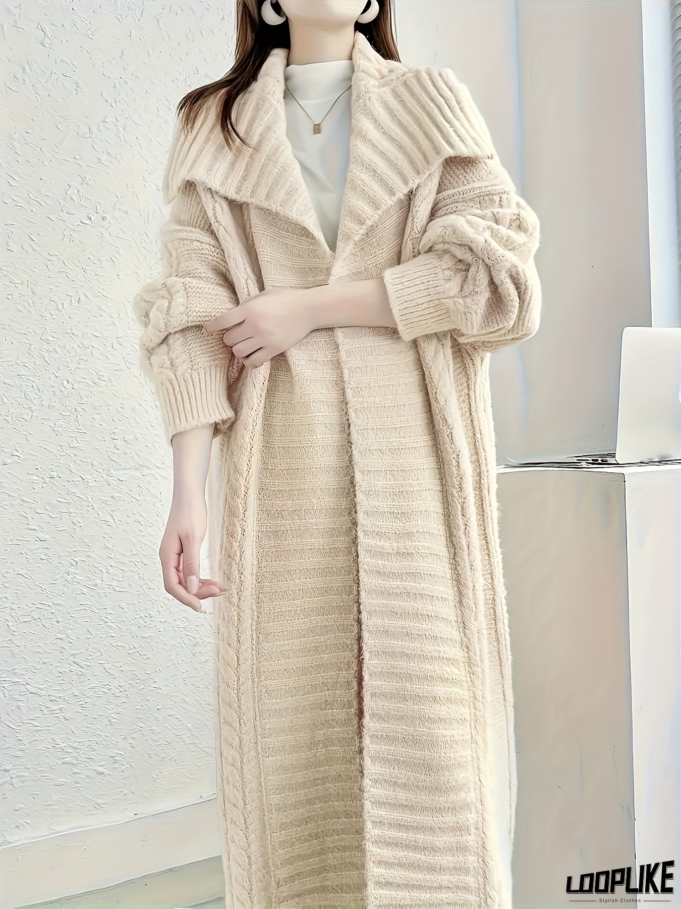 Plus Size - Women'S Elegant Long Sleeve Cardigan - Soft Front-Open Sweater, Oversized Solid Color Hooded Coat for Fall/Winter, Comfortable Layering Piece, High-Quality Knitwear, Winter Outerwear, Minimalist Style, Cozy Texture