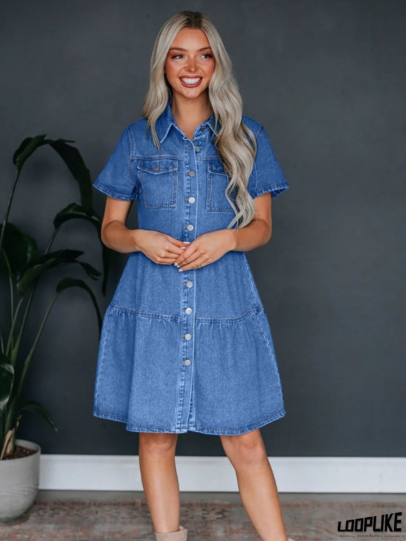 Women'S Denim Dress Short Sleeve Collared Casual Summer Style, Jeans Dress for Women, Denim Dress for Women Plus Size, Plus Size Denim Dress for Women, Denim Dress with Pockets for Women, Denim Dress for Women, Everyday Outfit, Summer Fashion, Collared Dress, Classic Denim, Nonstretch Fabric, Quality Stitching, Buttonup Dress, Pocketed Dress, Denim Dresse For Women, Denim Dres For Women, Denim Dres Women, Denim Dresses For Women Summer, Jean Dresses For Women Denim, Blue Jean Dresses