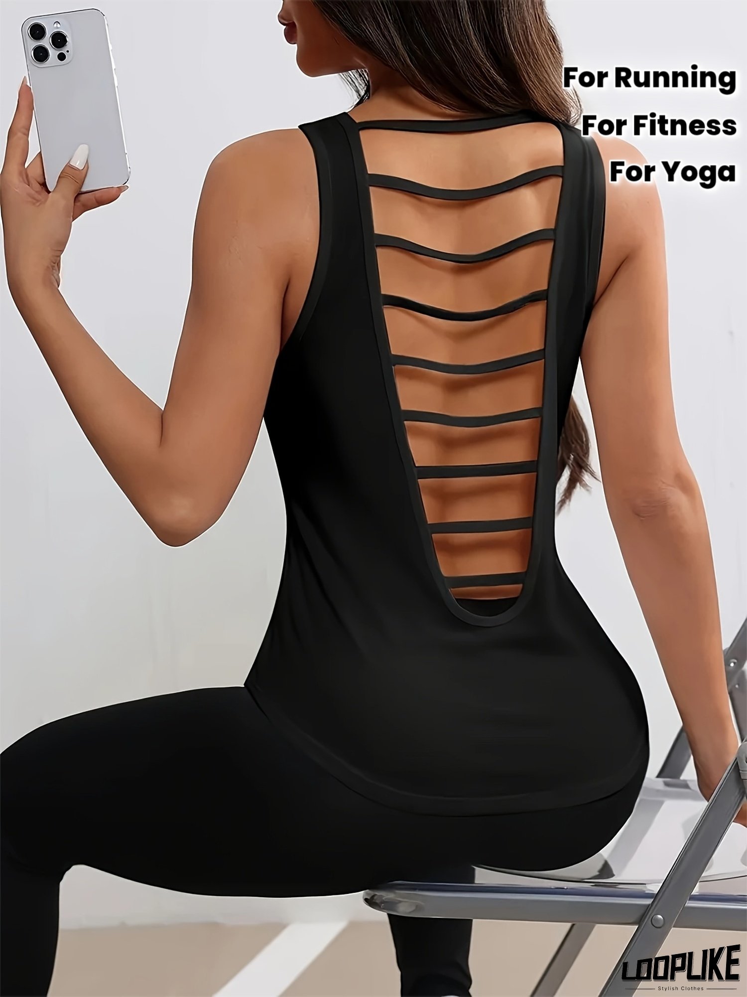 Women's Backless Workout Top - Stretchy Athletic Tank, Non-See-Through Exercise Shirt for Gym, Yoga, Running - Machine Washable Women's Fitness Apparel, Gym Wear, Yoga Attire, Sporty Spaghetti Straps, Highelastic Material, Nontransparent Fabric