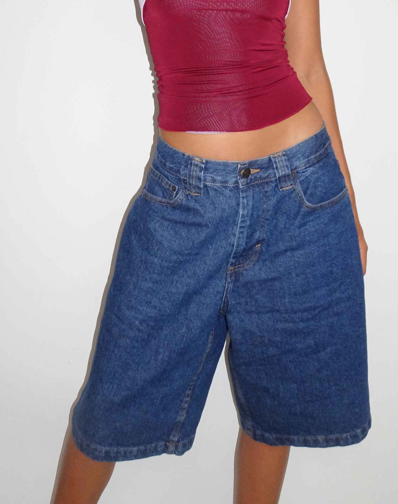 These 90s-inspired baggy denim jorts feature a high-waisted design, relaxed fit, and a classic dark wash finish for a retro, streetwear look. The durable denim fabric and classic five-pocket design offer practicality, while the loose silhouette ensures all-day comfort. Perfect for skate parks, music festivals, or casual outings, they pair effortlessly with crop tops, band tees, or oversized hoodies for an edgy, nostalgic ensemble.