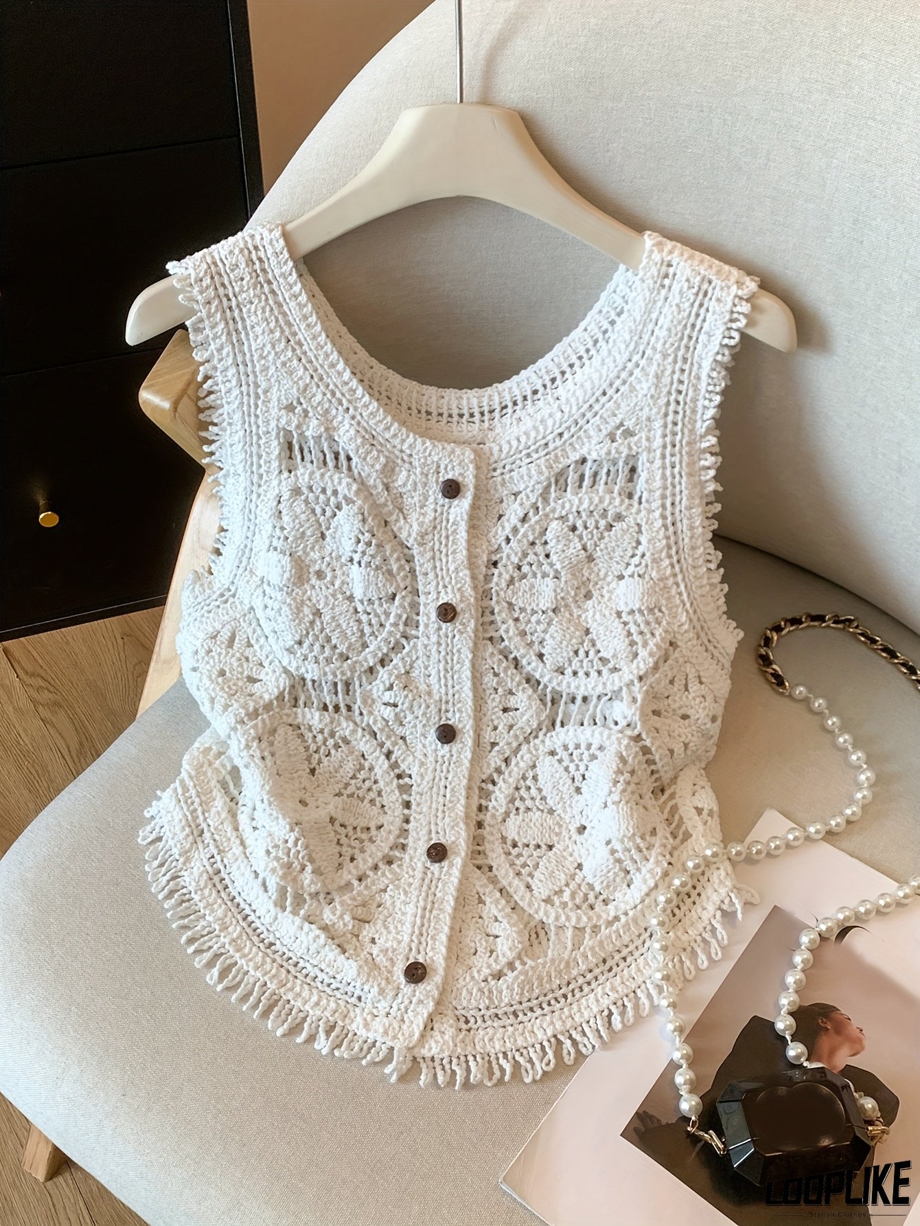 Women's Bohemian Crochet Cardigan - Lightweight Summer Vest With Floral Cut-Out Details & Tassel Accents, Semi-Sheer Round Neck Sleeveless Cover-Up For Beach Vacations, Casual Outings, Resort Wear, Breathable Material, Vacation Wardrobe