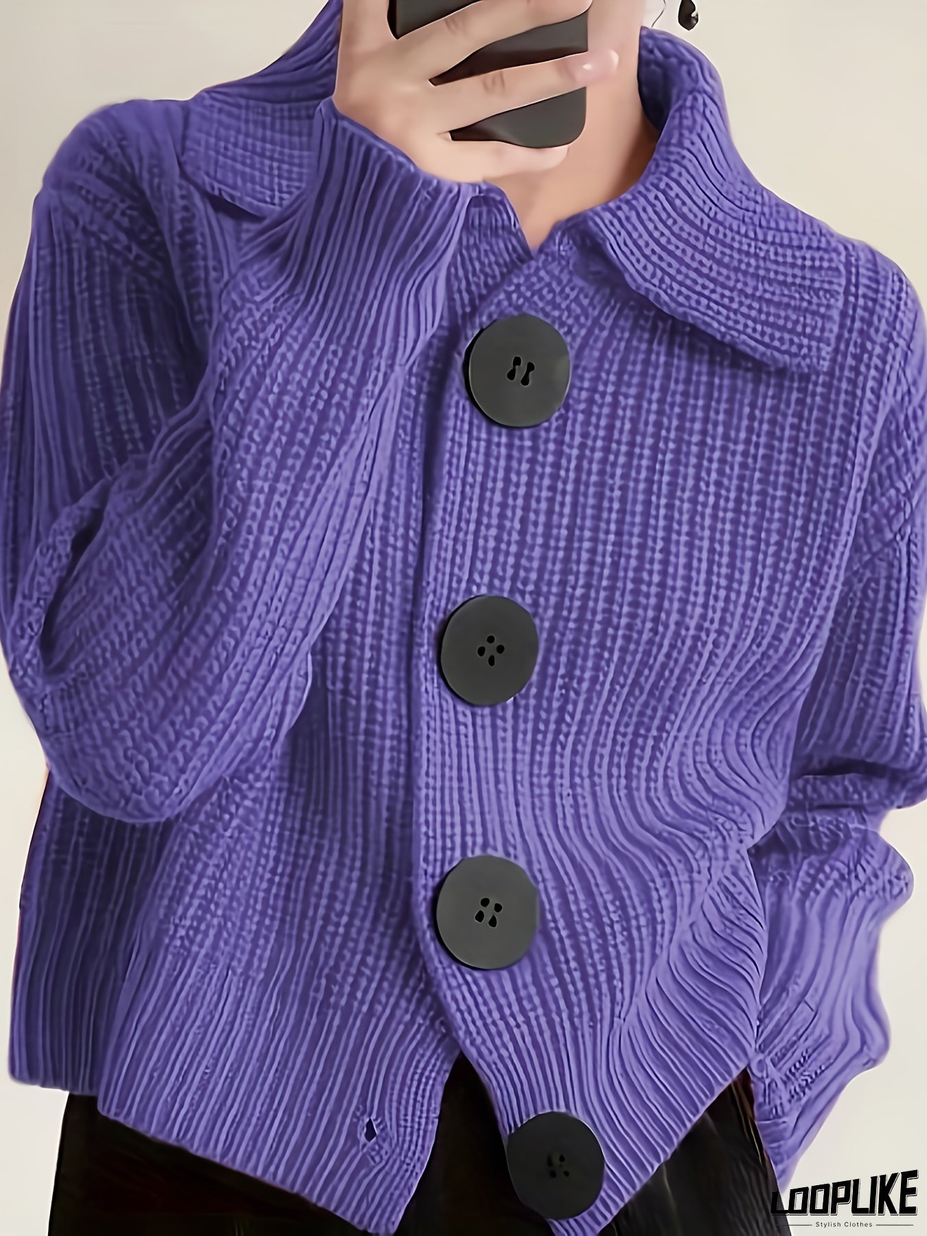 [Casual Cardigan for Women] Women's Casual Cardigan - Loose Lapel Collar, Long Sleeve, Solid Color, Large Button Front | Perfect for Spring & Fall, Relaxed Fit Sweater, Construction, Sweater Cardigan