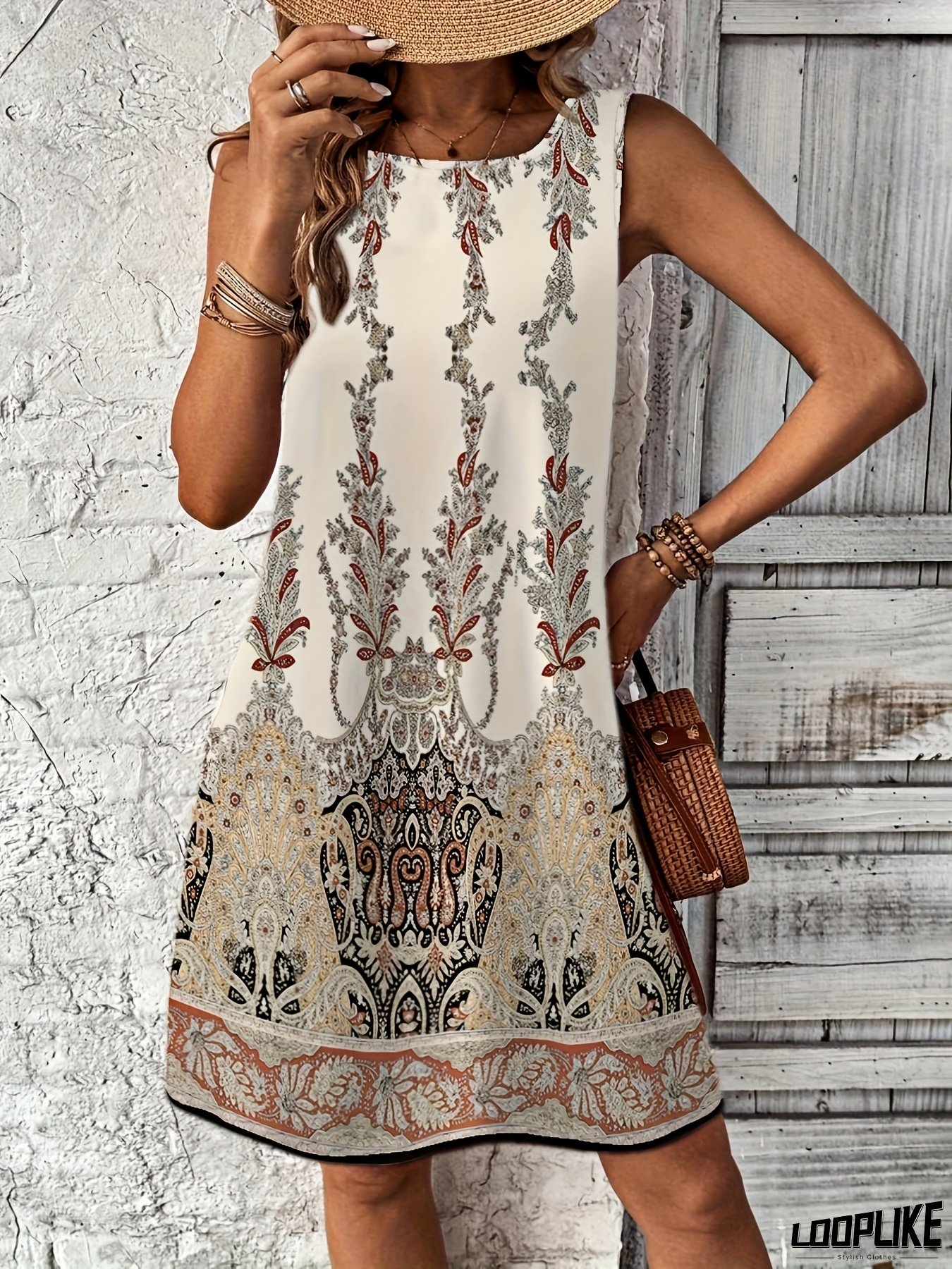 Women's Casual Floral Print Sleeveless Dress - Fitted Round Neck Machine Washable Lightweight Summer Dress for Spring Summer Fall, Beach Vacation & Daytime Outings, Cute Summer Dresses