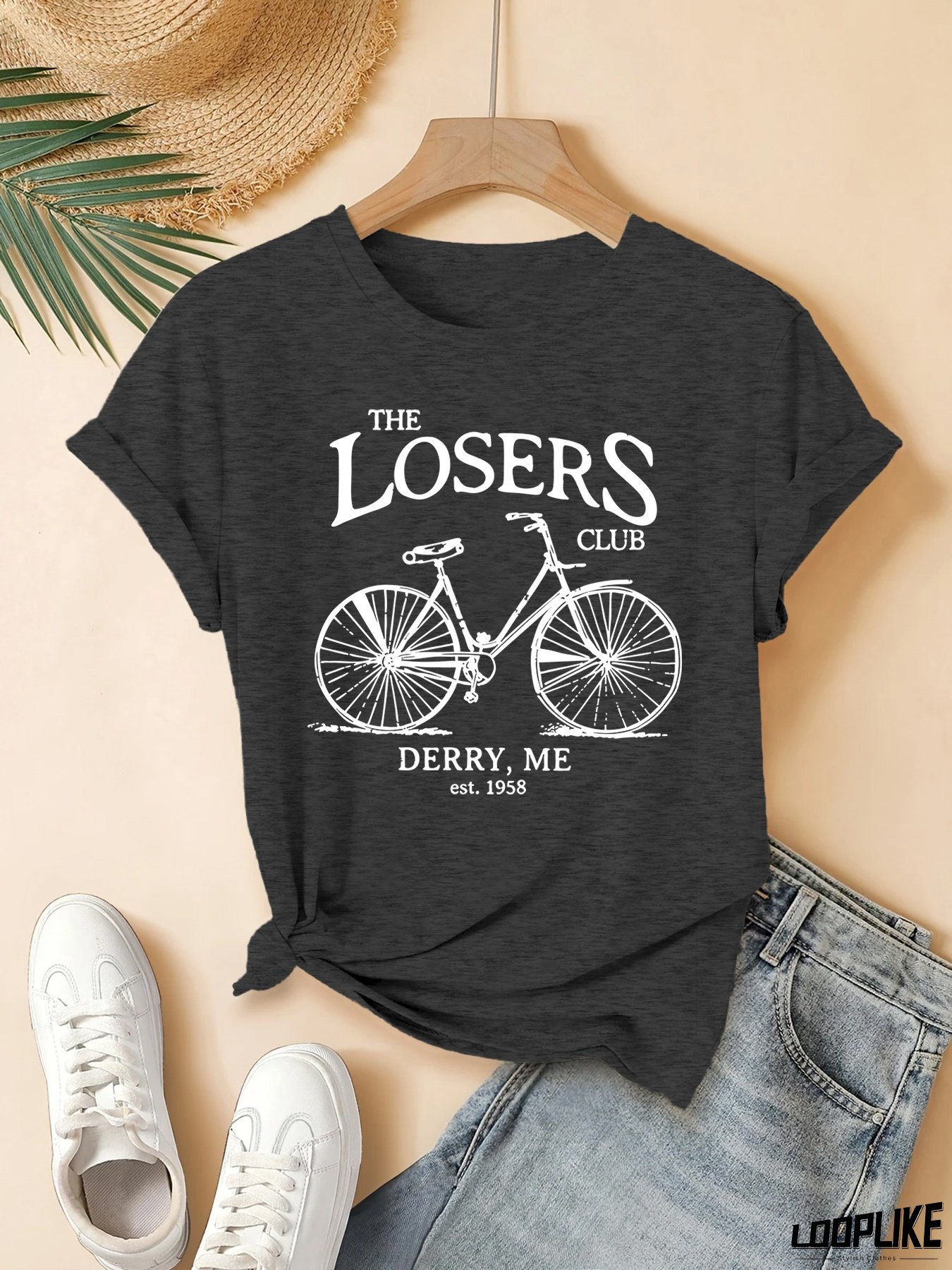 Women's Casual "The Losers Club" Graphic T-Shirt - Short Sleeve, Crew Neck, Lightweight Polyester, Machine Washable, Perfect For Summer Outings And Sports, Casual Wear | Playful Print | Machine Washable Top, Ladies T Shirts