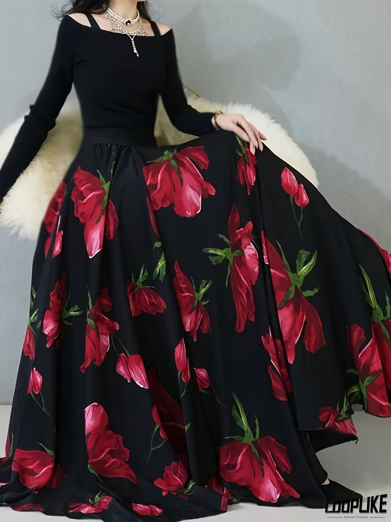 Women's Floral Maxi Skirt - Elegant Long Flowy Skirt With, Formal & Casual Outfits - Spring/Summer Party Wedding Everyday Outfits - Women's Fashion Bottoms, Cute Skirts, Summer Outfit, Sophisticated Style, Flowy Fabric, Spring Wardrobe, Breathable Material, Office Wear