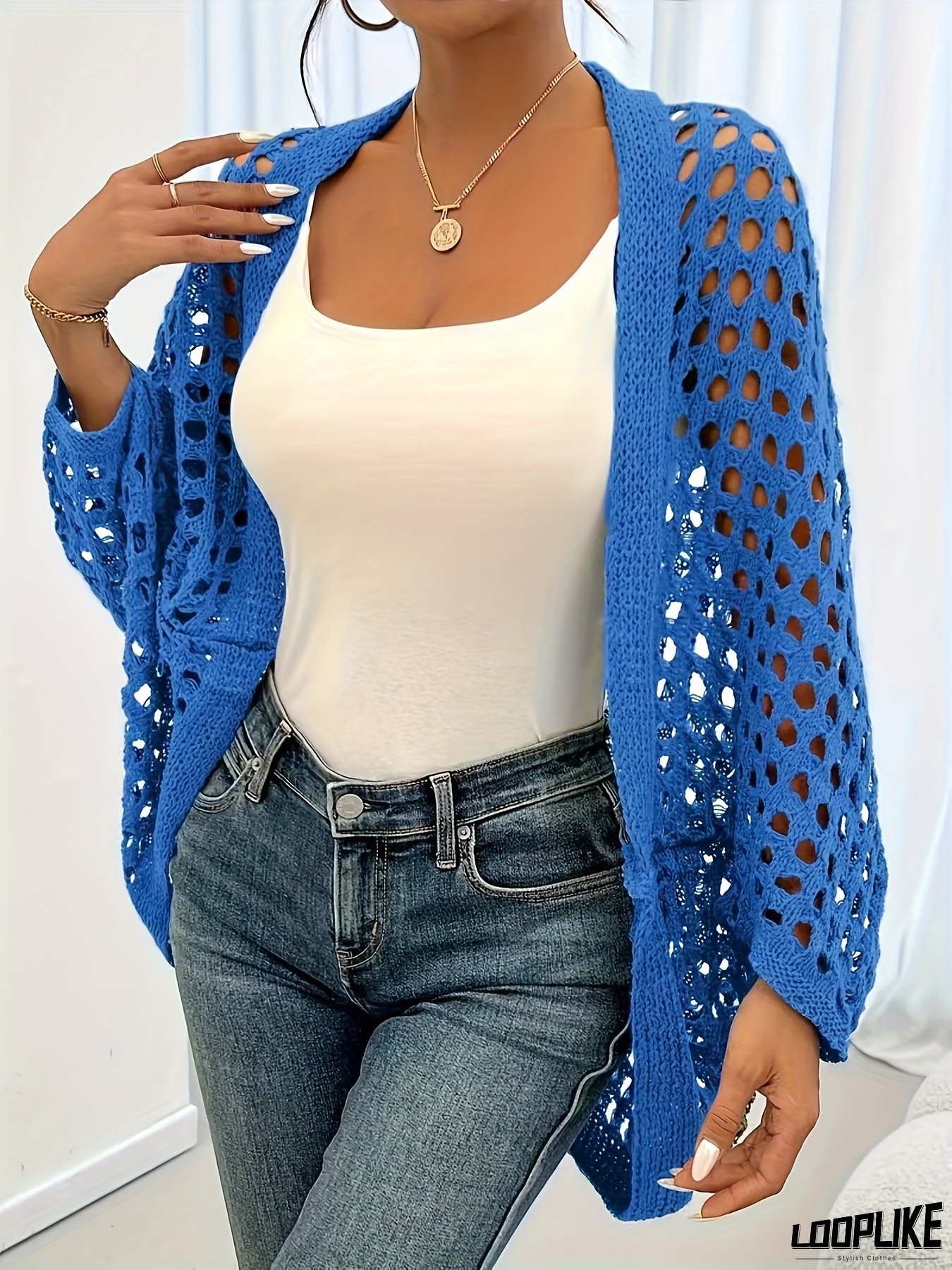 Women's Light Blue Crochet Cardigan - Casual Loose Fit Short Sleeve Openwork Cover-Up For Spring & Fall, Versatile Solid Color Top For Casual Attire, Spring Outerwear, Fashionforward Women, Comfortable Fashion