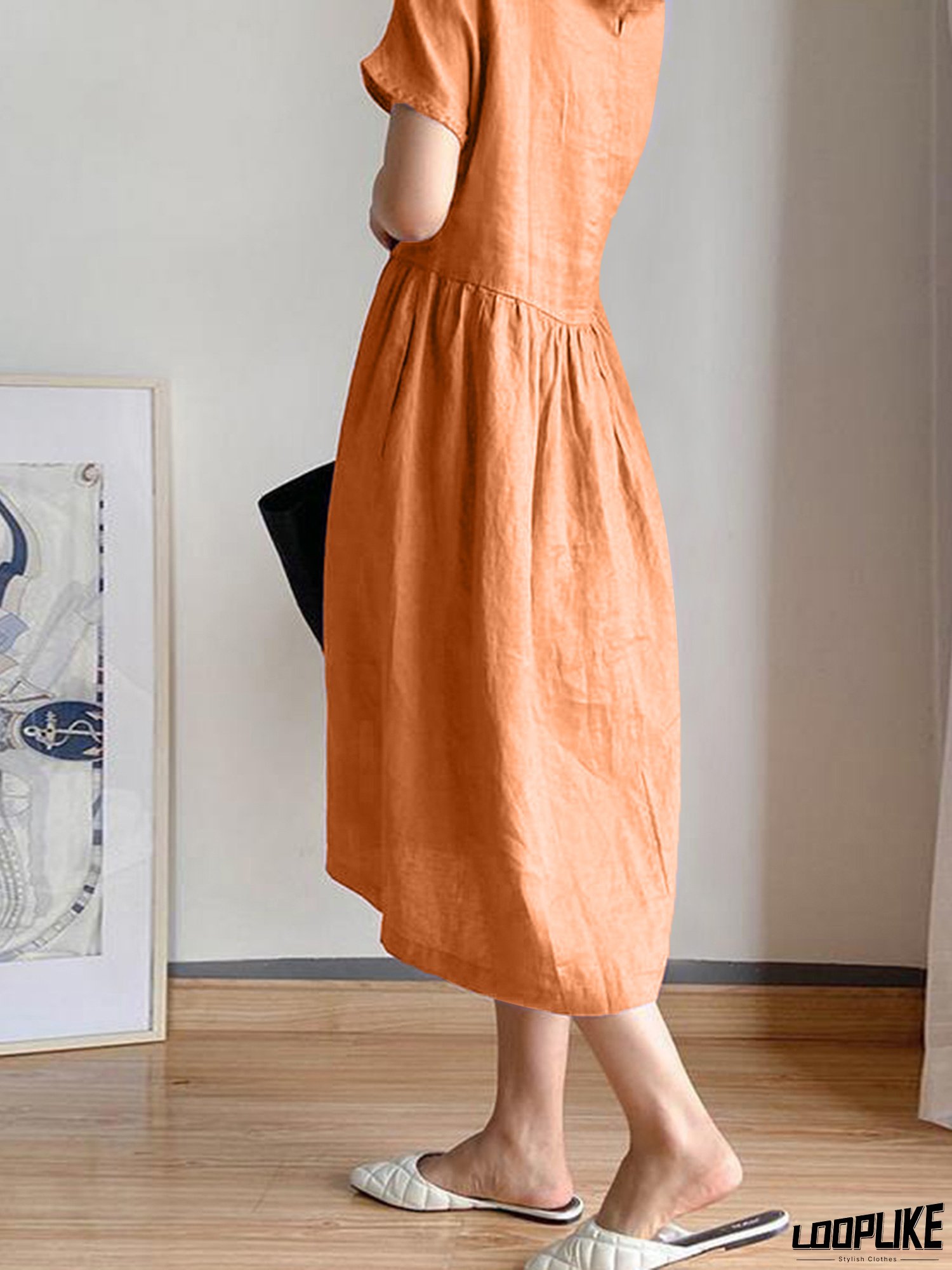 Women's Light Purple Linen Midi Dress - Sleeveless Round Neck A-Line Beach Dress With 2 Pockets, Lightweight Breathable Fabric For Summer, Casual To Semi-Formal Outfits, Hand Washable (Linen Fabric) - Ideal For Spring/Summer, Easter, Beach Outings & Casual Attire - Relaxed Fit With Structured Waist, Solid Color Design, And Comfortable For Warm Weather
