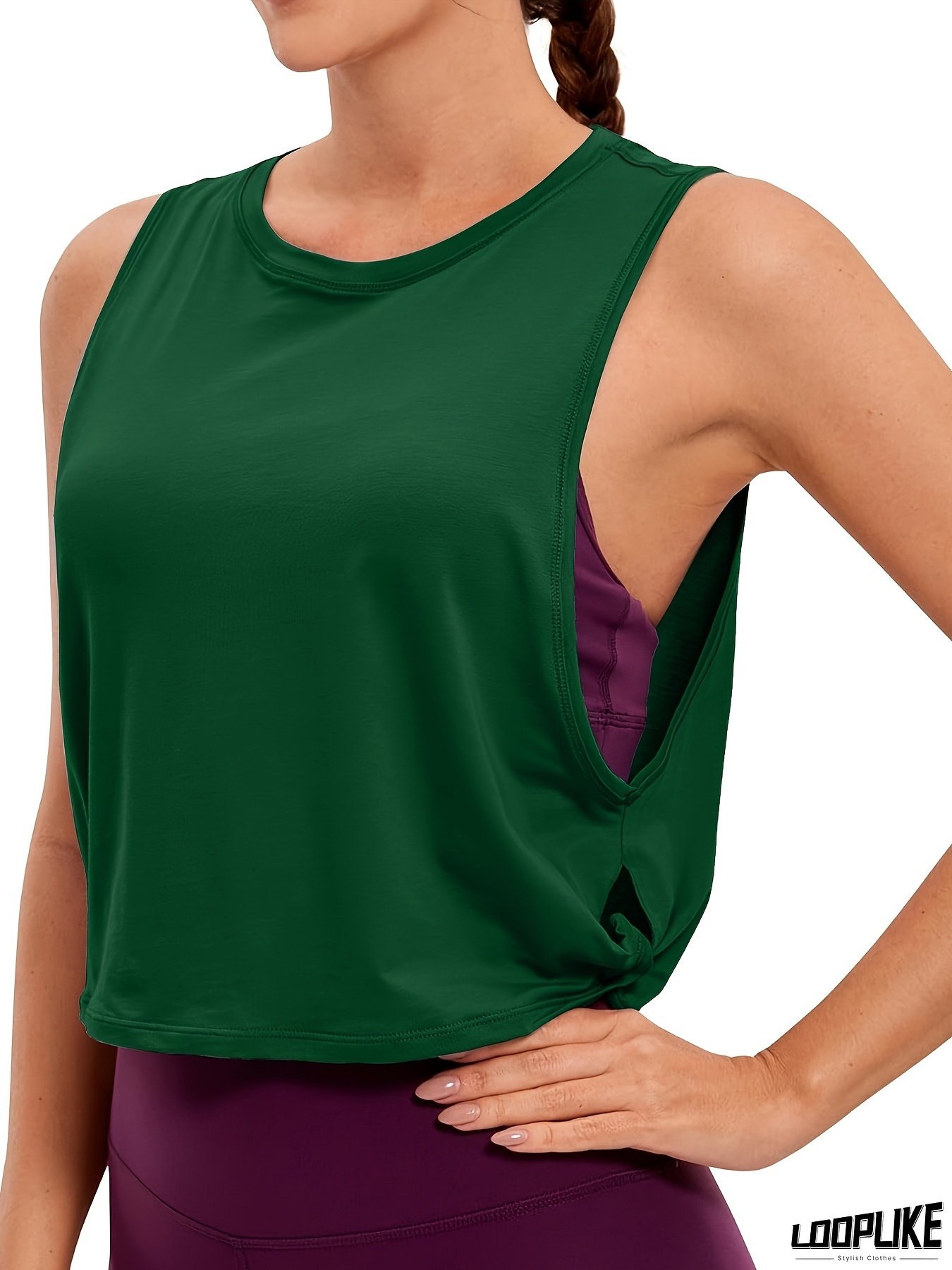 Women'S Lightweight Quick-Dry Yoga Tank Top - Breathable Sleeveless Workout Top with Twist Detail, Solid Green & Purple, Perfect for Fitness & Sports, Yoga Apparel | Twist Front Design | Quickdry Fabric