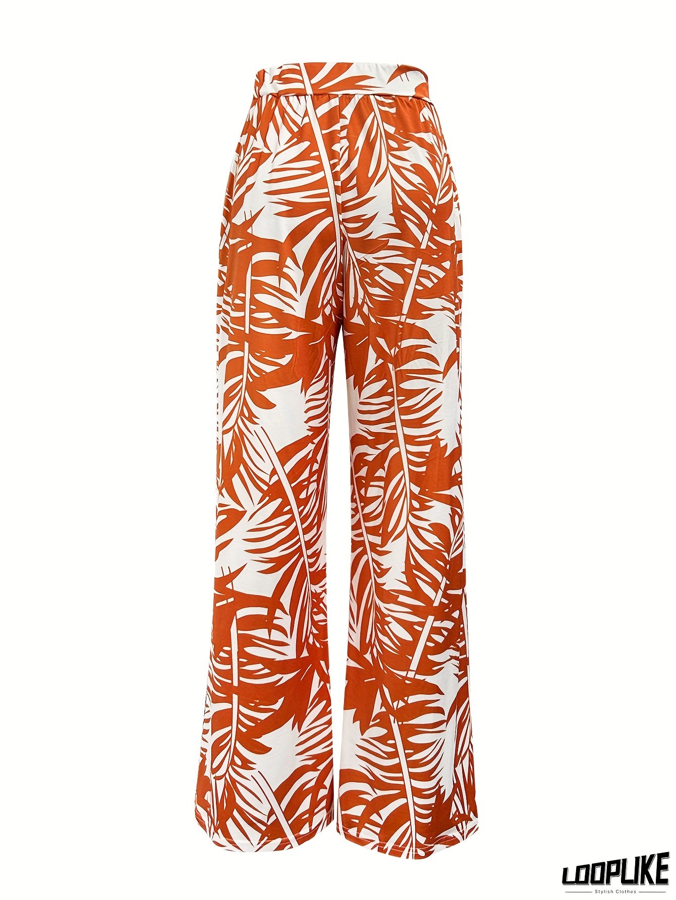 Women'S Orange Floral Print Wide-Leg Pants - Loose Fit, Elastic Waistband, Lightweight Polyester for Spring/Summer Vacation & Casual Wear, Vacation Clothing | Floral Print Pants | Polyester Fabric