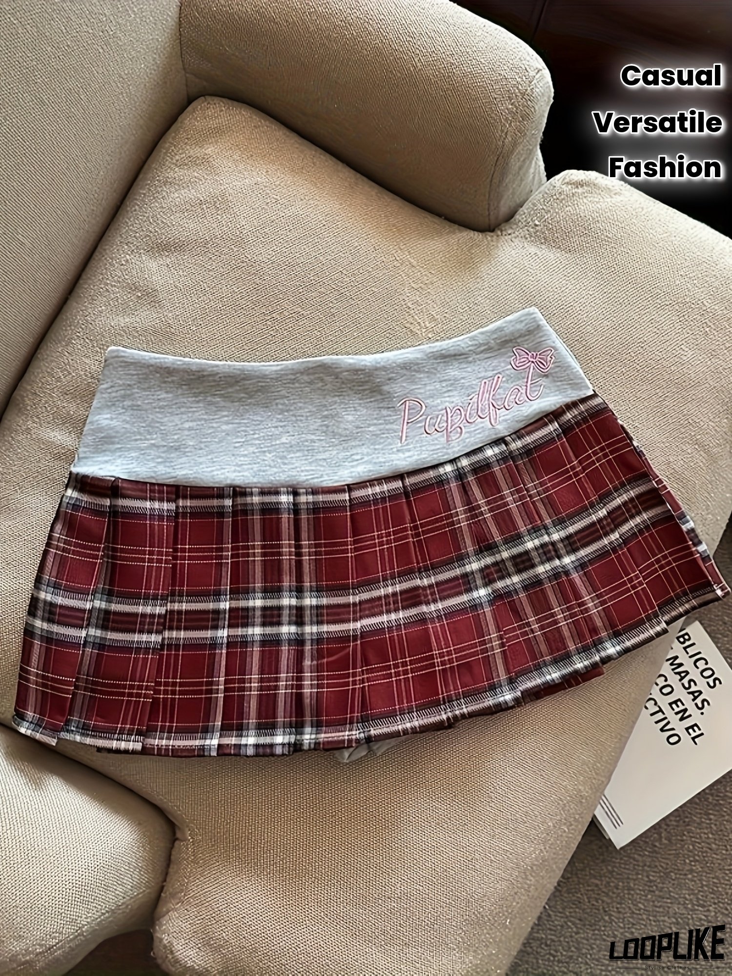 Women'S Pleated Grid Skirt - Slim Fit A-Line Mini Skirt with Pink & White Checkered Pattern, Light Blue Trim, Spring Summer Fall Casual to Office Wear, Versatile & Cute Skirt, Cute Skirts, Fall Fashion, Stylish Detail