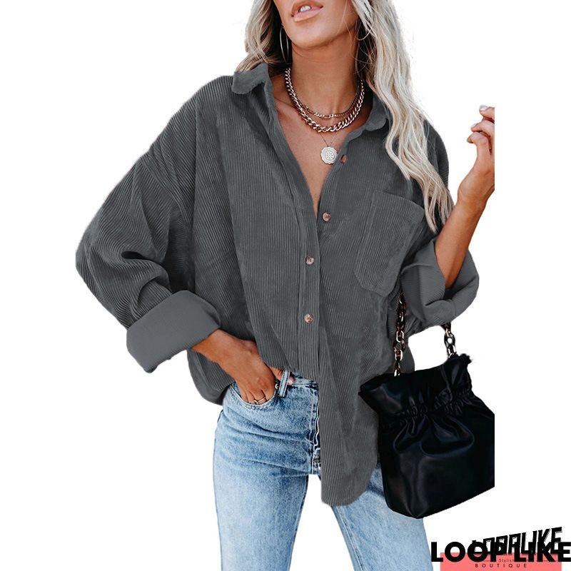 Womens Plus Size Fall Jacket Shacket Fashion Fall Outfits Corduroy Shirts with Pockets Casual Long Sleeve Button Blouse Tops