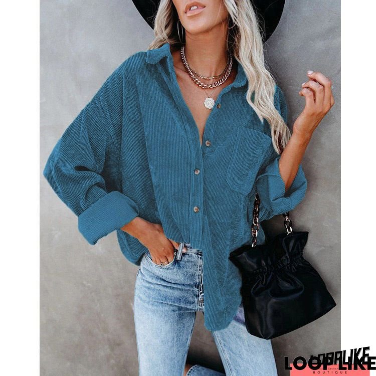 Womens Plus Size Fall Jacket Shacket Fashion Fall Outfits Corduroy Shirts with Pockets Casual Long Sleeve Button Blouse Tops