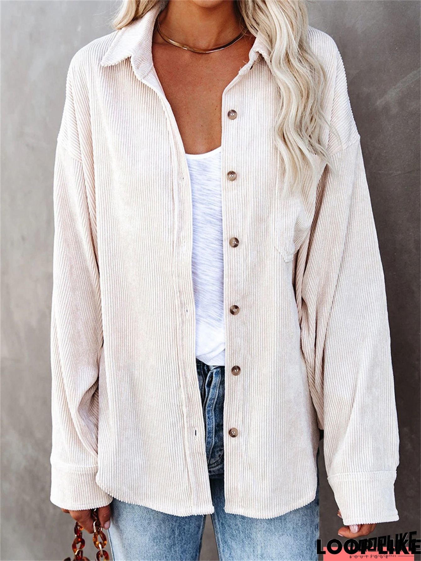 Womens Plus Size Fall Jacket Shacket Fashion Fall Outfits Corduroy Shirts with Pockets Casual Long Sleeve Button Blouse Tops