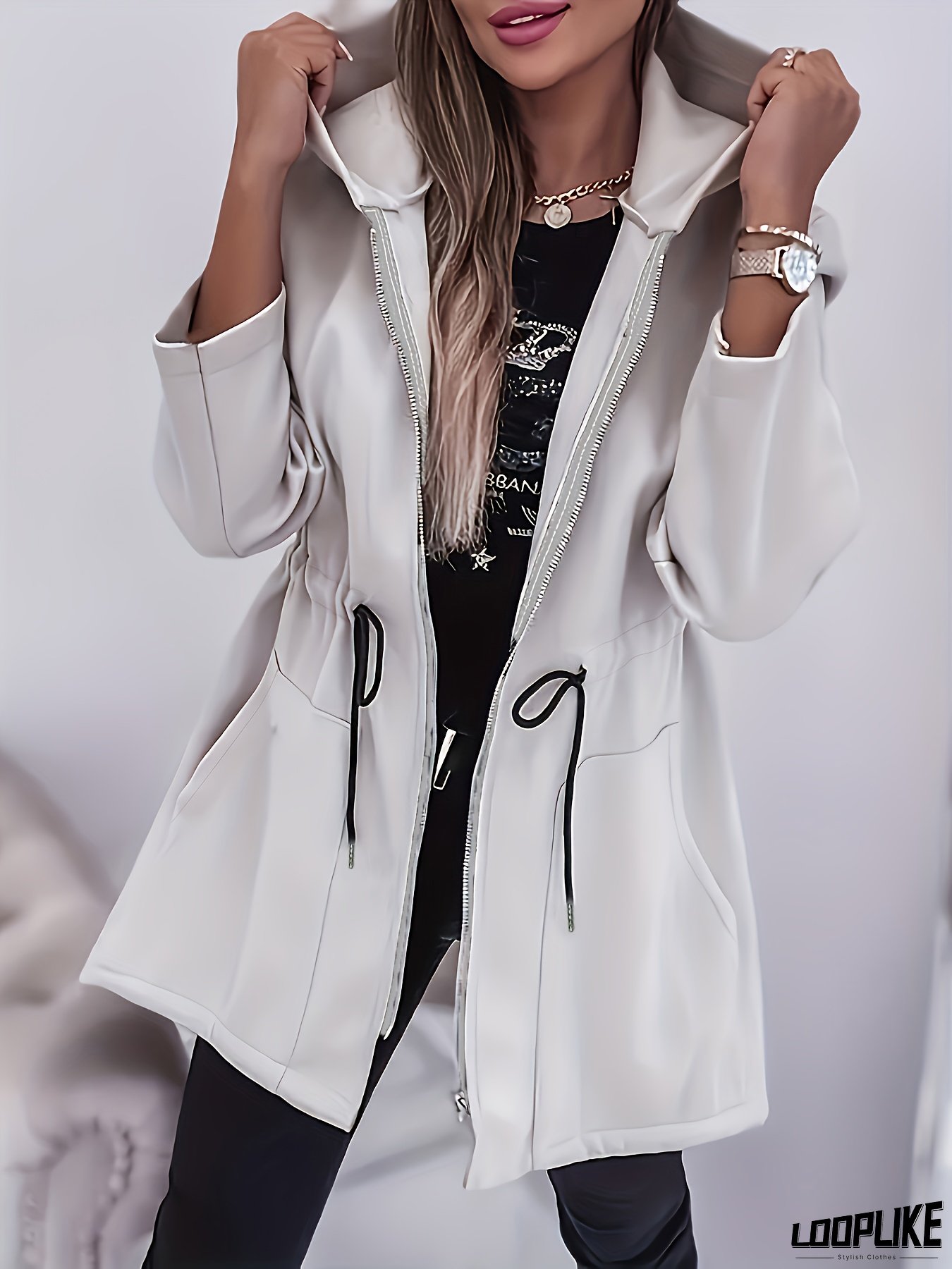 Women's Zip-Up Hooded Jacket - Lightweight Coat with Drawstring Hood, Full-Zip Closure, Machine Washable Winter & Fall Outerwear for Everyday Formal Occasions - Elegant Women's Clothing, Zip Up Hoodie, Seasonal Fashion, Minimalist Design, Comfortable Fabric, Fashionconscious Women