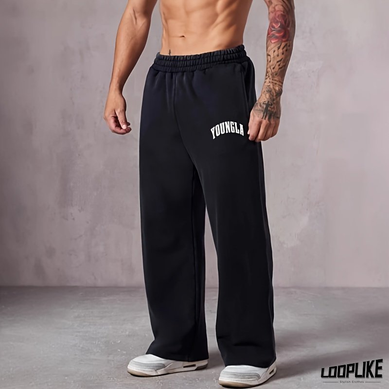 YoungLA Y2K Street Pants - Loose Fit Wide Leg Non-Bulging Gym Joggers, Bold Letter Print Workout Pants for Men & Women, Machine Washable Urban Streetwear for Training, Casual Outfits - Black Athletic Trousers, Training Gear, Sporty Design, Durable Construction, Unisex Joggers, Fitness Enthusiasts
